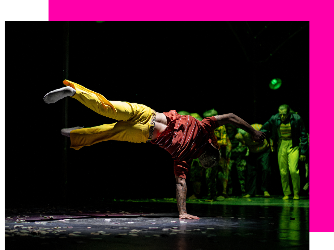 Tout est repensé : le mouvement défie la gravité, les corps chutent, s’élèvent et se suspendent. L’espace s’ouvre à de nouvelles possibilités et le rapport au sol, essentiel dans le hip-hop, est profondément transformé.