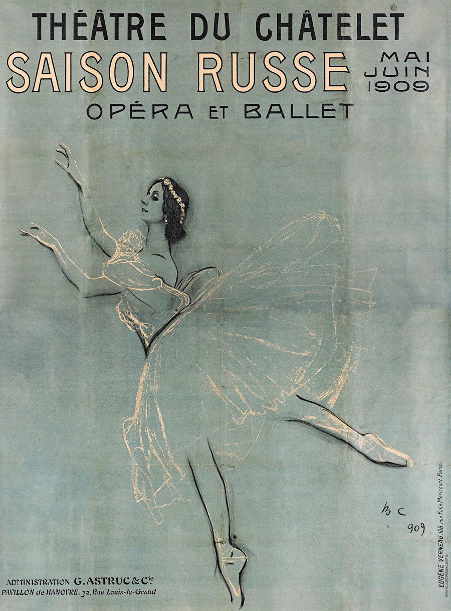 En 1909, la danse y brille de mille feu avec la première soirée entièrement consacrée aux Ballets Russes de Serge Diaghilev, dans le cadre de la Saison Russe Opéra & Ballet dirigée par Gabriel Astruc – le futur directeur artistique du Théâtre des Champs Elysées.